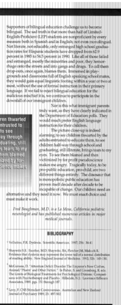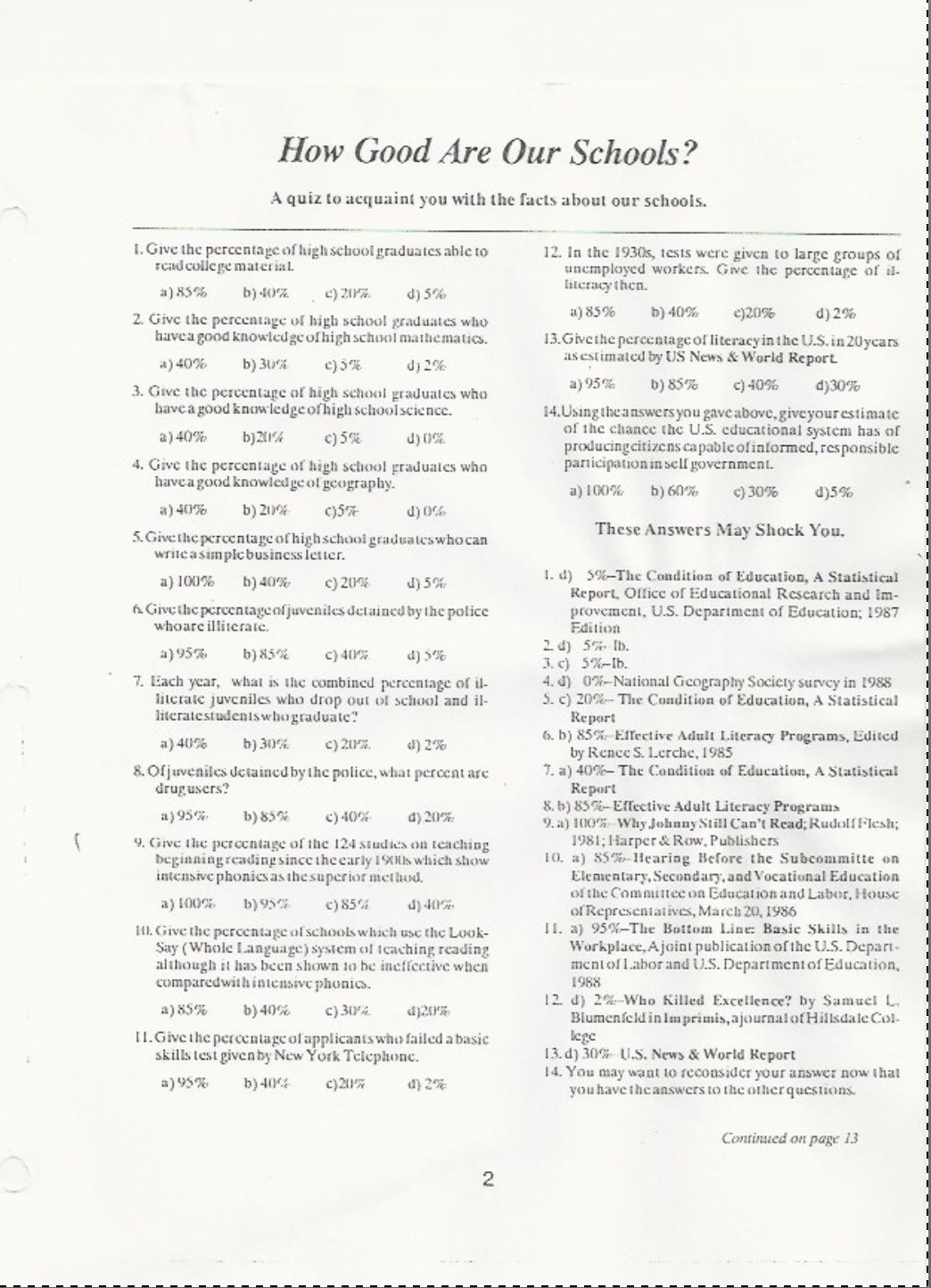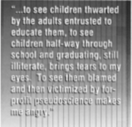 Thank you Alfie Kohn and Dennis Baron and Mike Ford and Gerald Coles and Harvey Daniels and Gerald Bracey and Susan Ohanian and Stephen Krashen and Jim Trelease and all the other propagandists who lash out continuously against successful practice in general and phonics in particular. Through your tireless efforts, the public is continually misinformed. Without the public's perpetual state of confusion and misinformation, Whole Language would not have survived a single day. Thank you for keeping Look-Say and Whole Language and Balanced Literacy alive to create yet another generation of people who can read as well as my wife does.