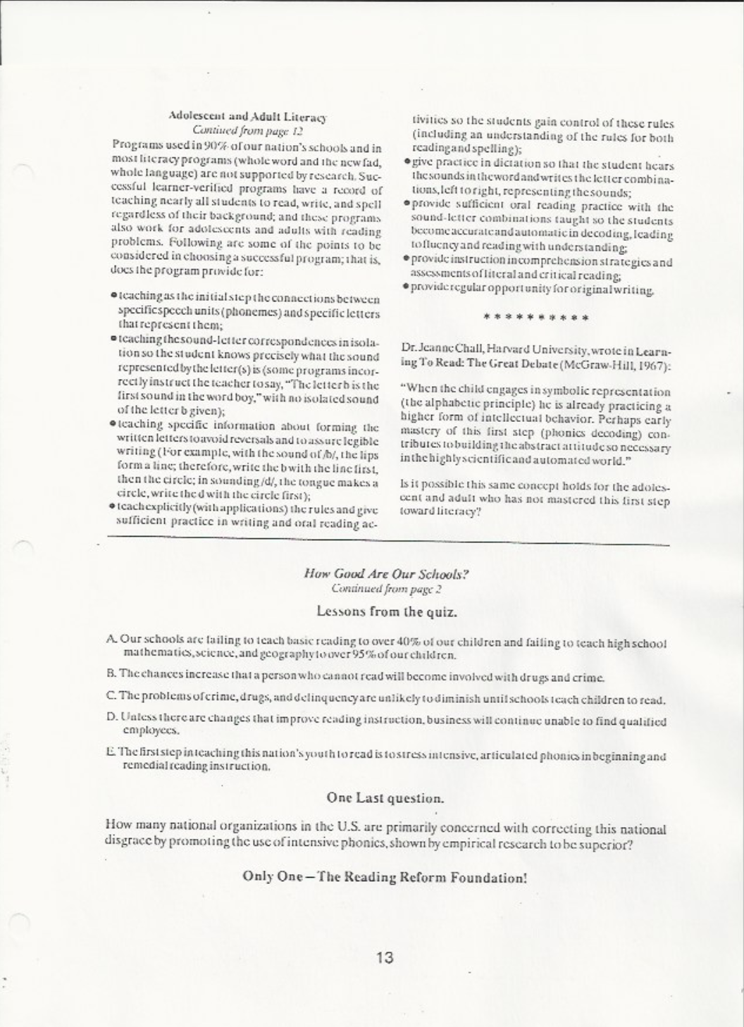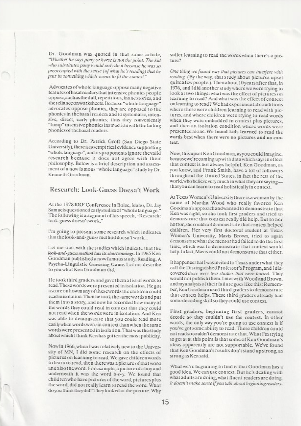 THE TRUTH ABOUT PHONICS THAT WILL HELP YOU HELP YOUR CHILD! WHOLE LANGUAGE: A FRAUD PERPETRATED UPON OUR STUDENTS. ONE OF MANY?