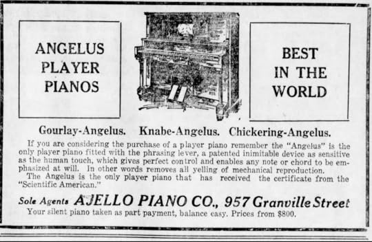 At the time of writing, the player piano was living at Salmagundi on West Cordova in Gastown. But last month, after 45 years in business, proprietor Anne Banner had the lease terminated and will be vacating the premises at the end of this month. The piano will be going to another temporary home in White Rock where it will be restored and rebuilt. EL