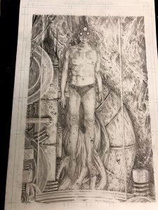 Entitled “The End Of The World”, this brings to life the scene where an old man, having sold out the human race, is kept alive with alien technology.