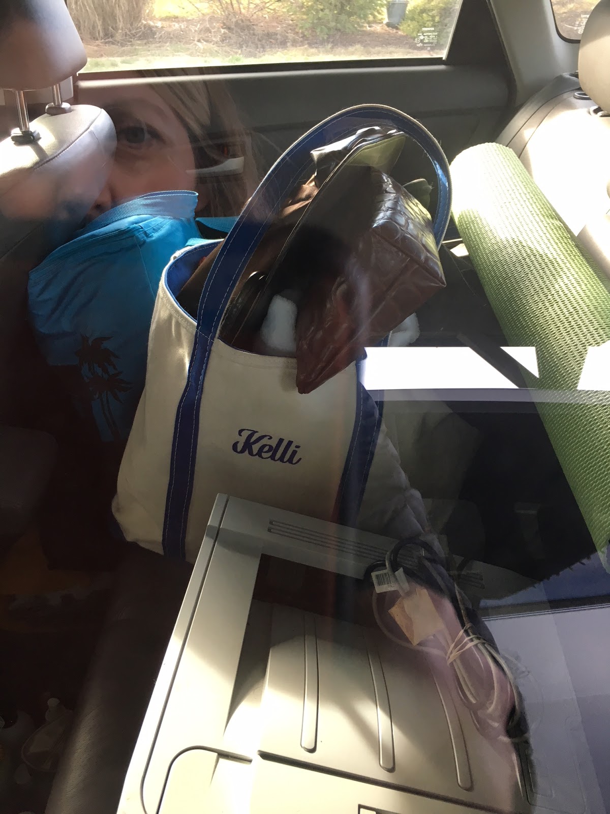 Also, I actually had to have my husband drive up my SUITCASE because yes, *that* was the thing I forgot. As you look at my stuffed car, notice there is NO suitcase in any of the photos. Oops.