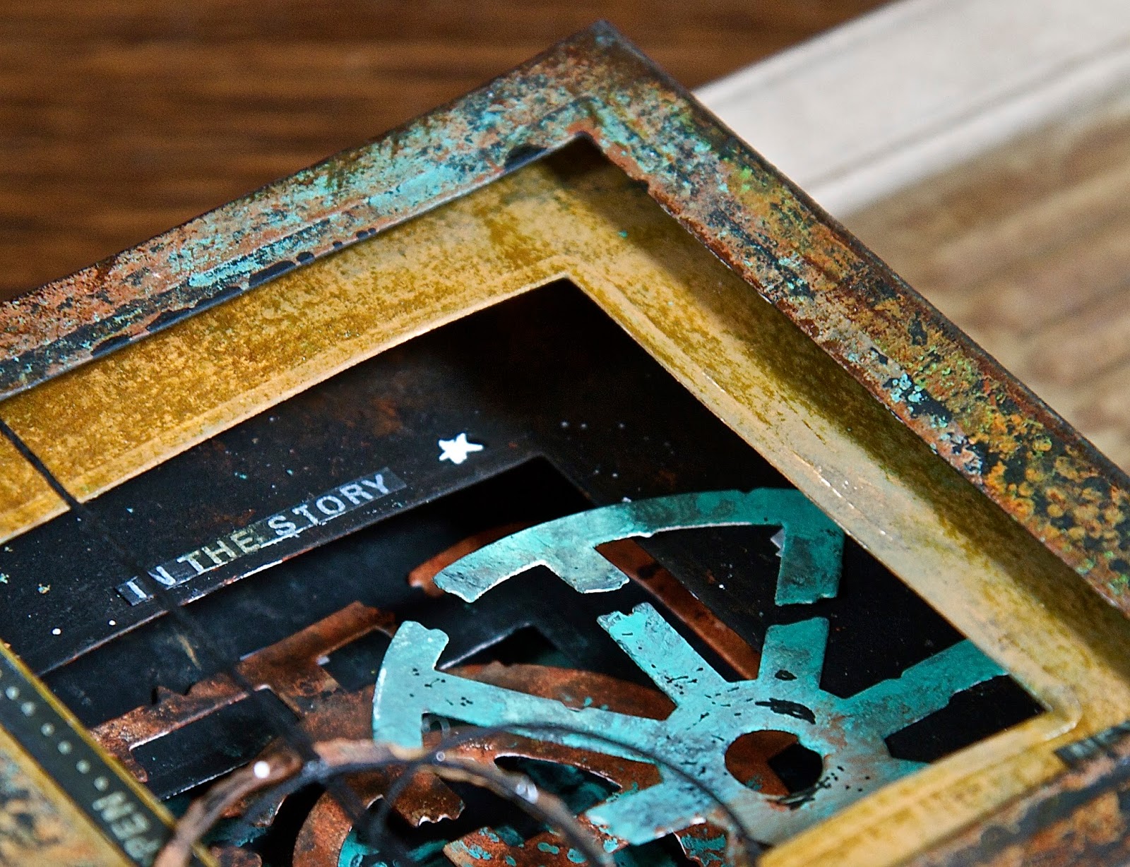 In this mixed media masterpiece, Debi uses my dies from Spellbinders, my stamps from Impression Obsession, my stencils from StencilGirl Products and my paints from PaperArtsy.