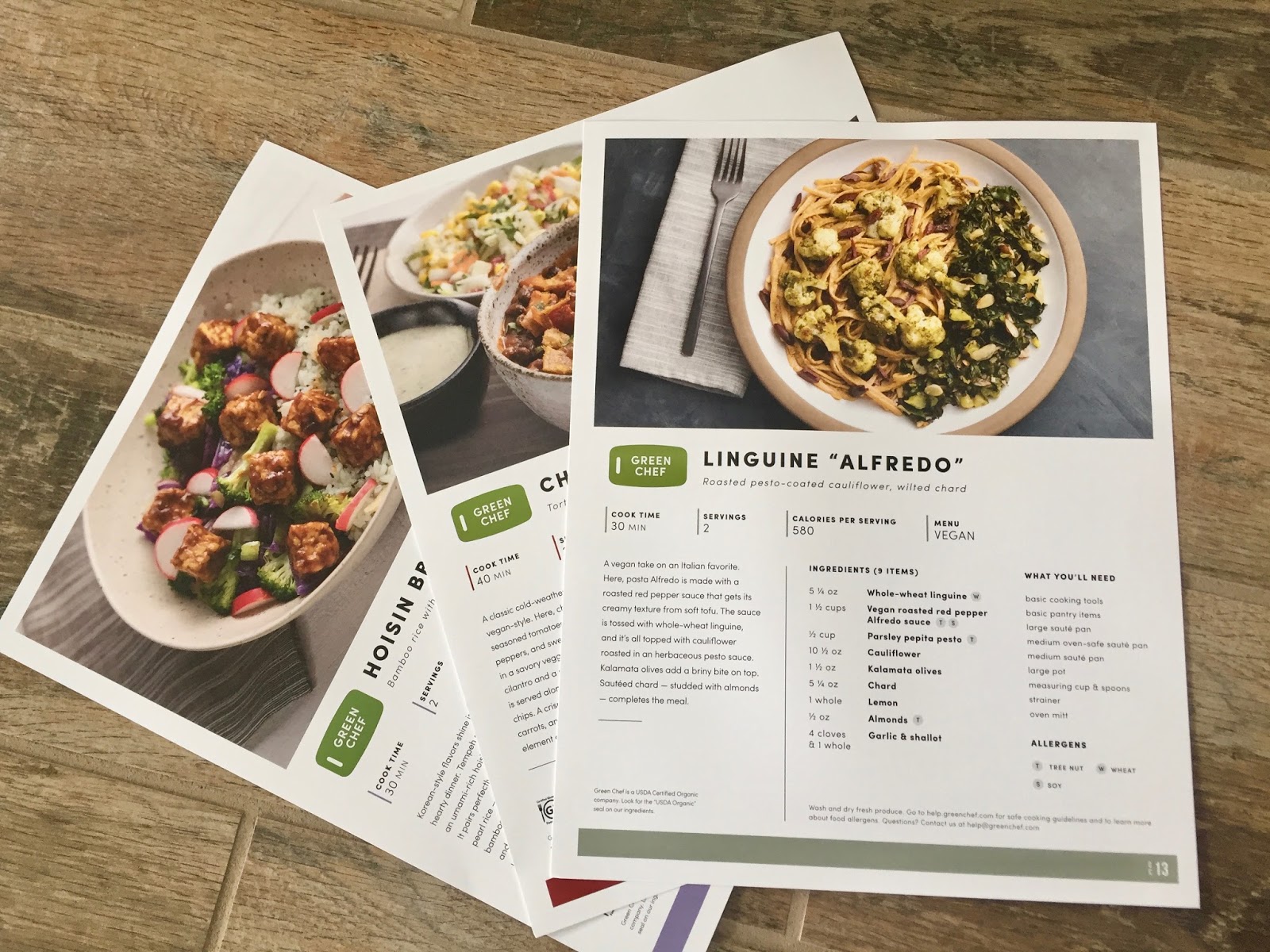 So far I'm happy with Green Chef's vegan meals and their easy to follow menu cards. I've gotten so used to the process that I don't need to read the menu ahead of time. I can cook the meal and have it plated and ready to eat in the time indicated on the menu card.
