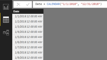 Date = CALENDAR(“1/1/2018”, “12/31/2018”)