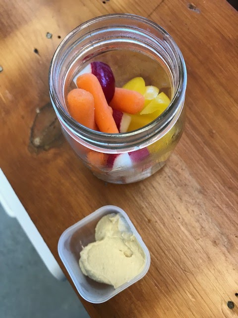 My morning snack was Radishes, Baby Carrots, & Bell Pepper with Garlic Hummus.
