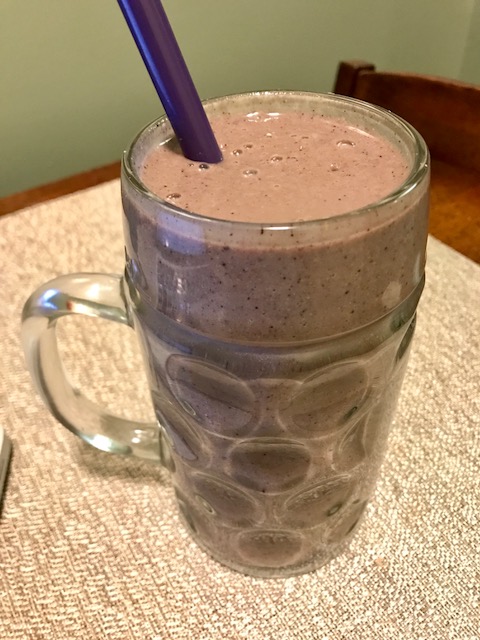 This morning started with another homemade No Bake Oat Bar (see yesterday's post for a pic!) followed by a 3-mile run. And then I had this standard Kale-Banana-Berry Protein Smoothie with flax seed and almond cashew milk. The berries were raspberry and blueberry, and I used Coconut Almond Vega One protein powder. Simple and filling.