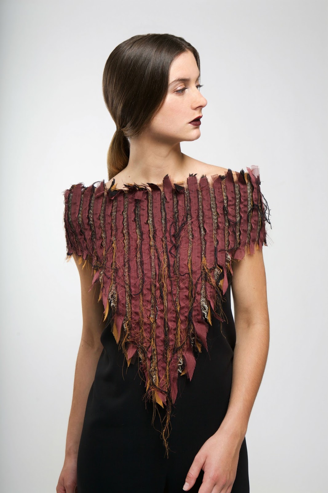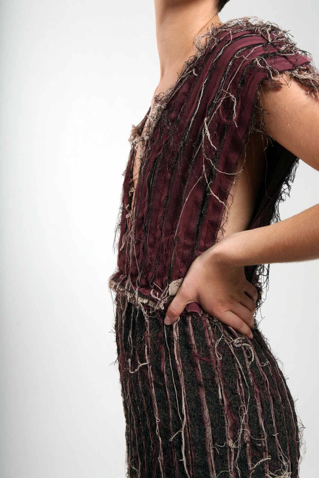 “Describo mi propuesta como algo experimental, me gusta crear texturas nuevas y contrastar colores. Mi propuesta más fuerte es ‘Corteza’, colección otoño/invierno que nace a partir de la inquietud de experimentar con los textiles y explorar el slash and show, técnica que consiste en unir dos o más capas de tela por medio de una grilla de costuras, para luego intervenirlas y develar las capas inferiores. A través de ella, se busca obtener materiales nuevos, únicos y originales.
