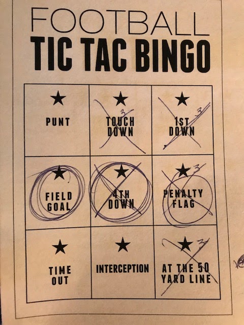 And apparently, the box marked At the 50 Yard Line meant on the 50 yard line, not the 49th or the 51st. The box I'd eagerly crossed off was disqualified. The longer I played, the more stupid I felt.