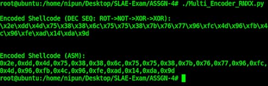 This is nothing but the original shellcode of /bin/sh program as we can see in the python encoder Yeepee! We have successfully decoded the entire shellcode with ease. We can name this encoder as RNX2 encoder as XOR-XOR-NOT-ROT operations are followed for encoding and ROT-NOT-XOR-XOR for decoding.