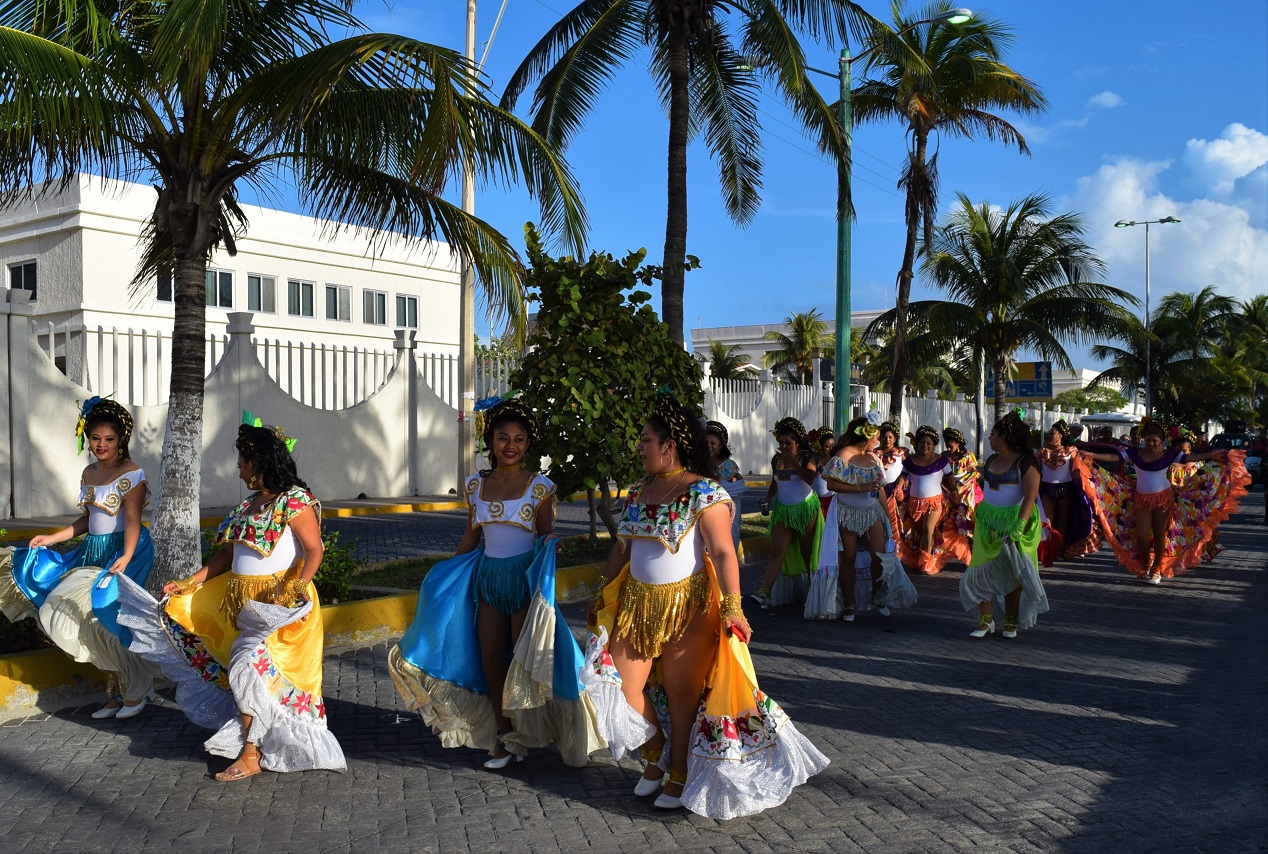 The senior Isla women's group. There’s loud music, and outrageously flamboyant costumes, and laughter for five days.At four in the afternoon on Sunday, the dance groups were scheduled to assemble on the old airport runway across from the Navy base in preparation for the first parade. Of course this being Mexico where everything starts at least two hours later than planned, there were only two groups who were on time – one being a collection of my friends who decided to debut as dancers this year.