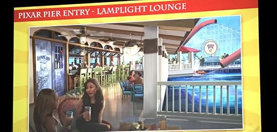 And though it won’t be there in June, the Pixar lamp shown in concept art for the Pixar Pier welcome sign will be there eventually and will have animated features.