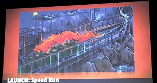 The big draw here is of course the Incredicoaster, the Pixar re-theming of California Screamin’. To transform the ride they’re adding show buildings at the beginning and end, updating the launch system and the loop with new technology, and closing in the scream shield tubes entirely to add characters and effects. The idea is the park guests are there for the inaugural launch day for the roller coaster, and the Incredibles family is in attendance. But Edna Mode and Jack-Jack are too short to ride, so they hang back…except Jack-Jack’s powers get out of hand. You can see some of the story concepts in the gallery below. Important note: one part of the ride features Mr. Incredible trying to tempt Jack-Jack with a chocolate chip cookie, and they’ll pipe the scent of the cookies into the tube.