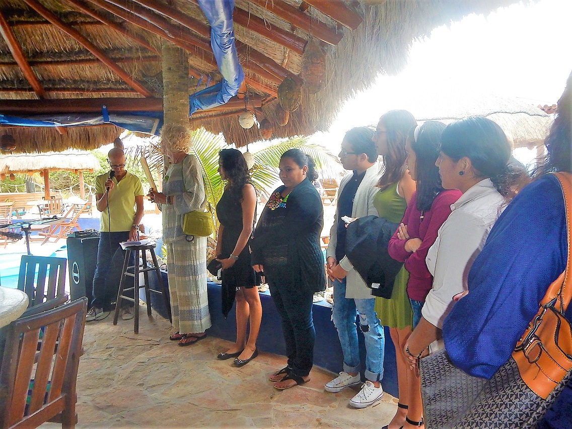 Richard Lock introducing some of the graduates of RBSFThis year Sparky and I received an invitation to participate with a book signing and a draw for the lucky person who will be ‘Killed Off’ in my Isla Mujeres Mystery Book #4. The lucky winner was Patti Packard. She will get a choice of being either a good person or a bad character in my next novel, due out late in 2018. (Book #3 Tormenta Isla is just a couple of weeks away from being published!)