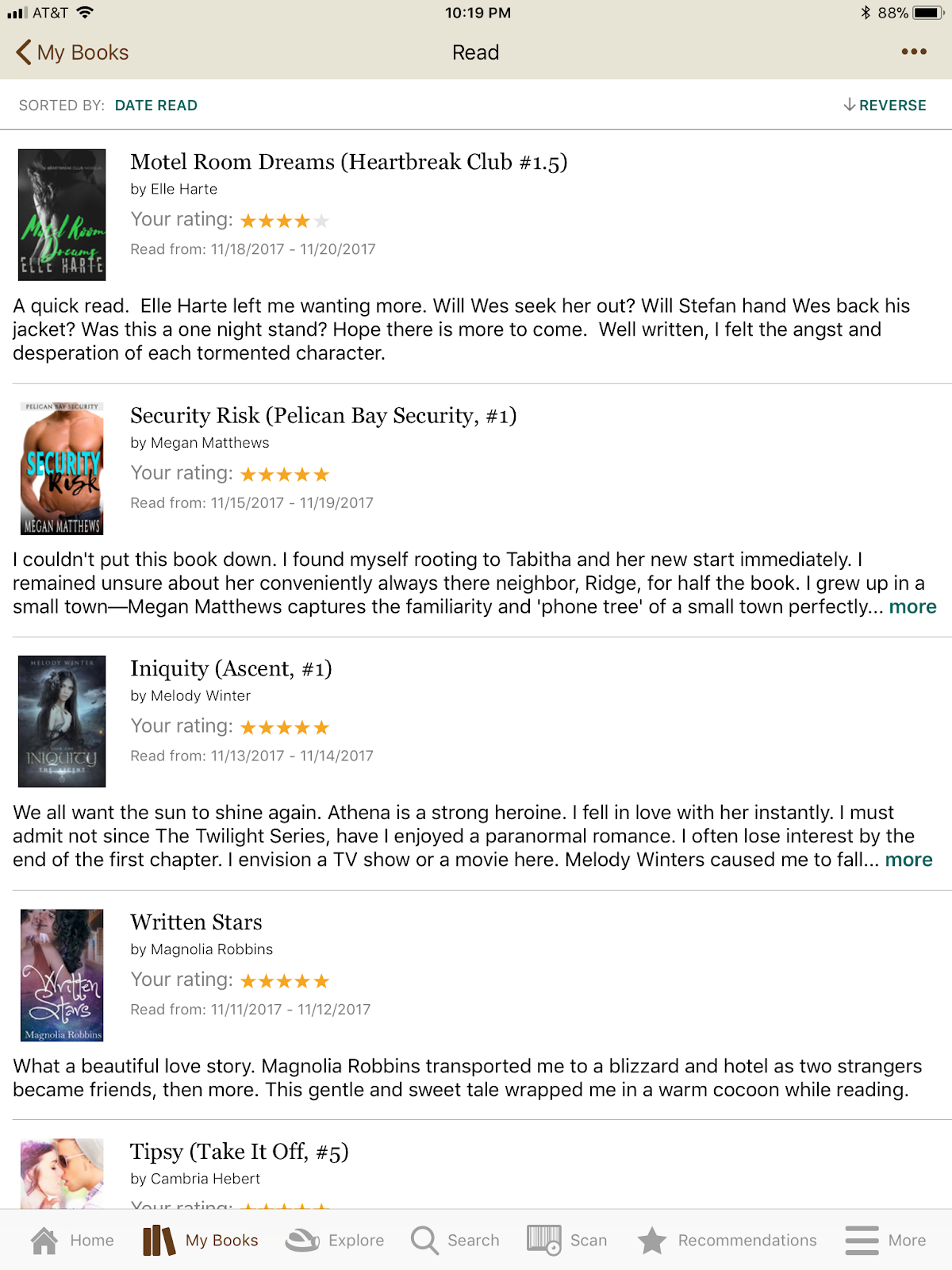 When I read a book, I try to leave a review onGoodreads and Amazon.Here are some recent reads and reviews I posted. Notice they aren't a mile long. Every little bit helps, but you must do more than just select the stars-write a few words.