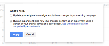 Though it can be tough to decipher, AdWords’ Experiments and Drafts feature, which allows you to propose and test changes to your Search and Display Network campaigns, can facilitate controlled tests, giving you control over bidding mechanisms to landing pages.