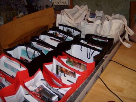 Nancy Holzner donated swag, a coffee mug and a couple signed books