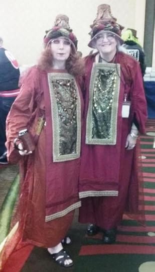 Day two of the con is going well. I finally found the guy I needed to find to work the kinks out of my wormhole generator focusing crystals. Santa was there to take photos with cosplayers on his knee. There were tiny baby puppies to pet.