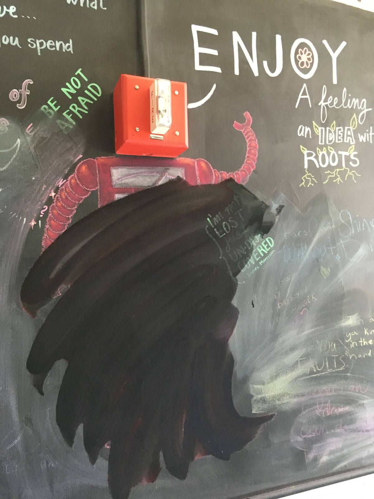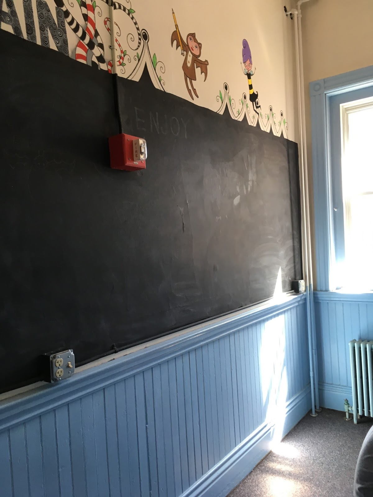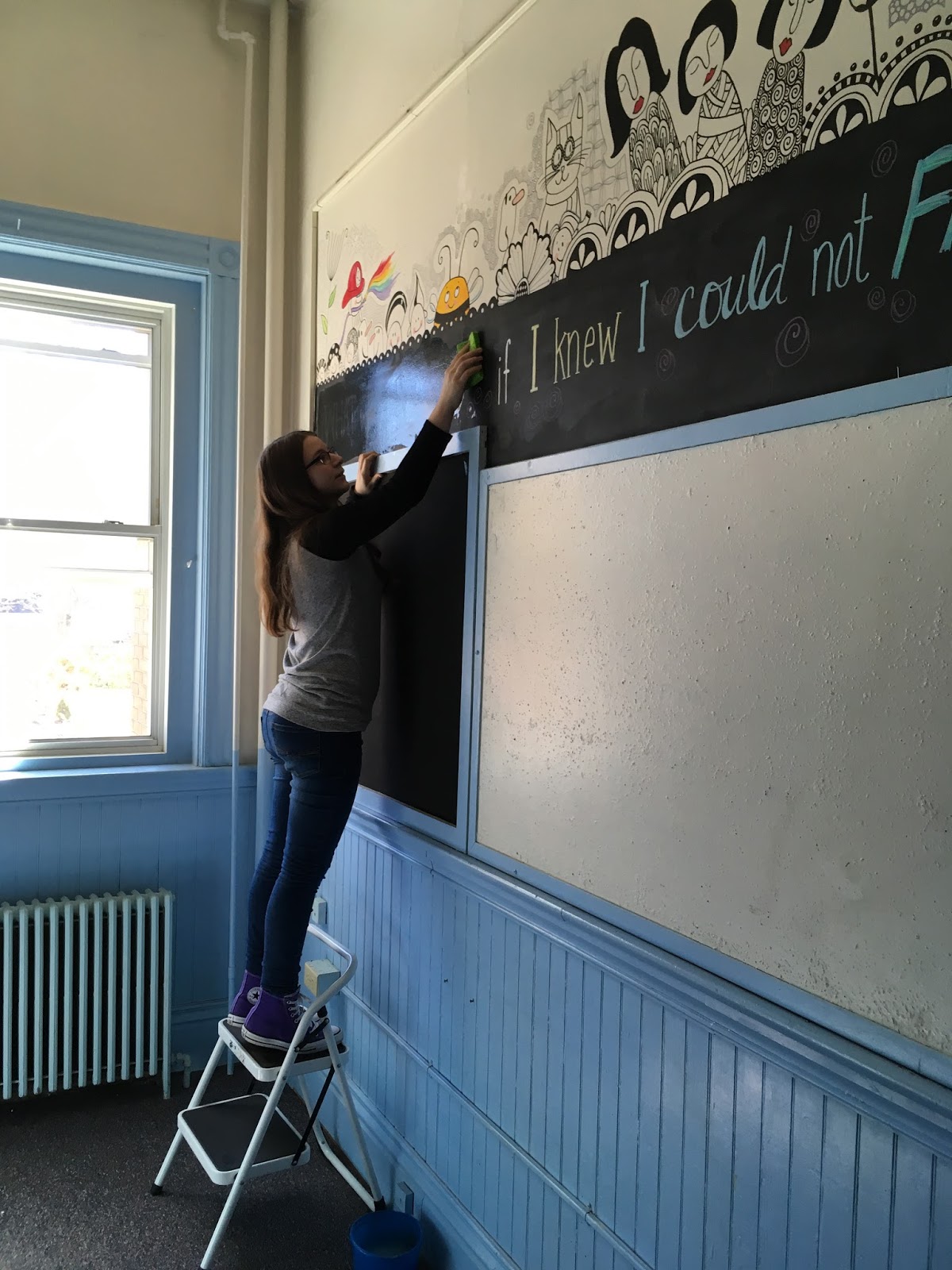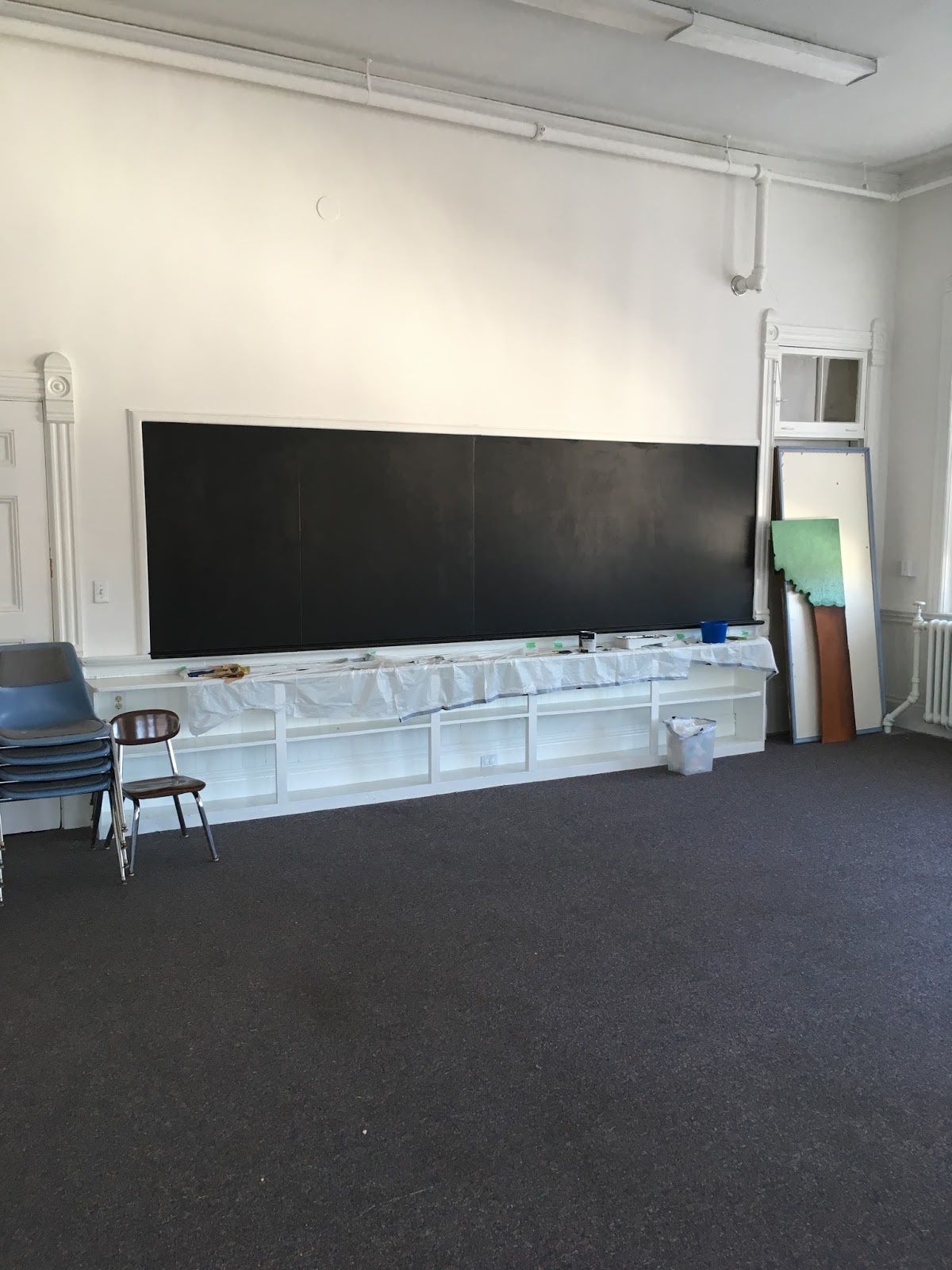 BEFORE AFTER We started with a chalkboard. This one is huuuuuge. Actually, the chalkboard is longer than the old studio...  It's going to need another coat of paint. And some trees, right?