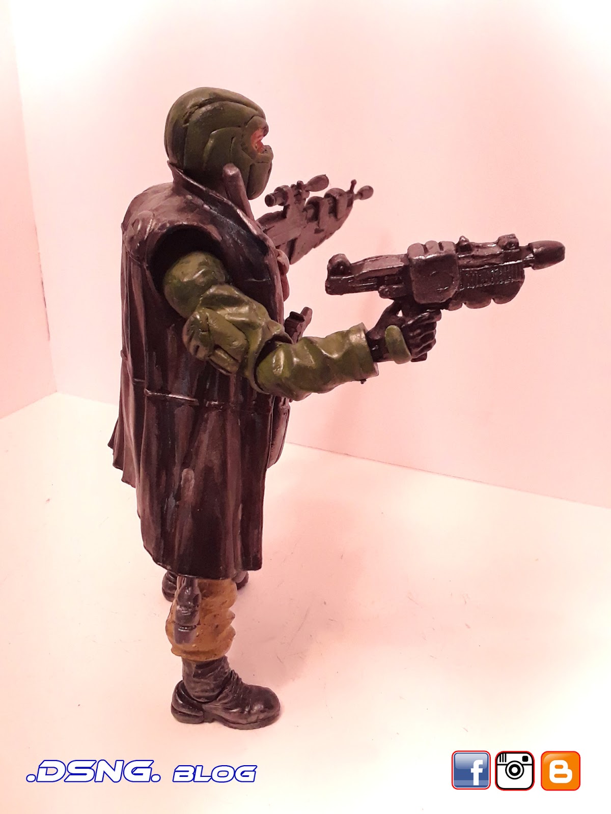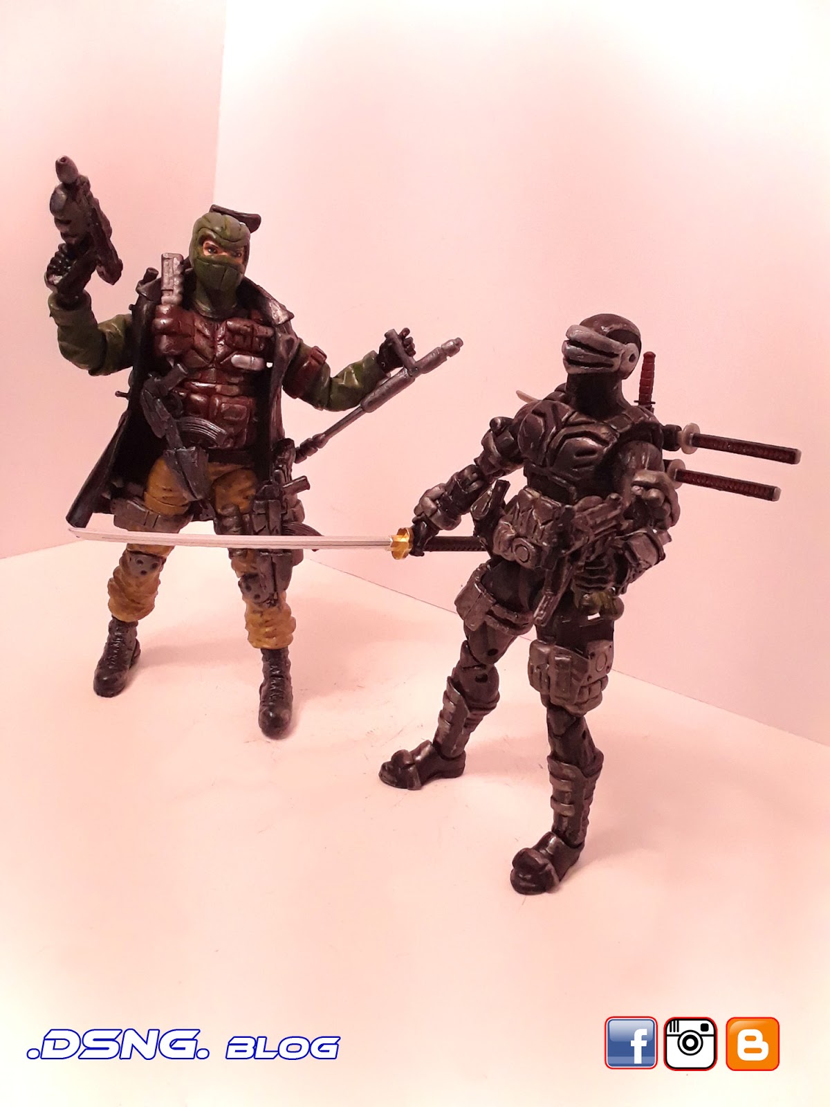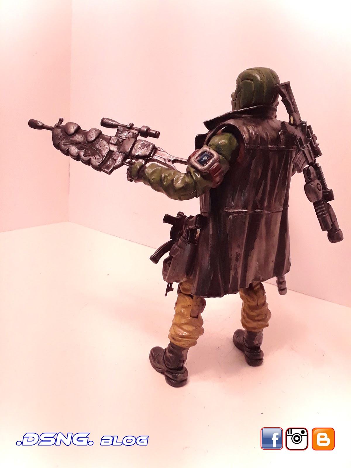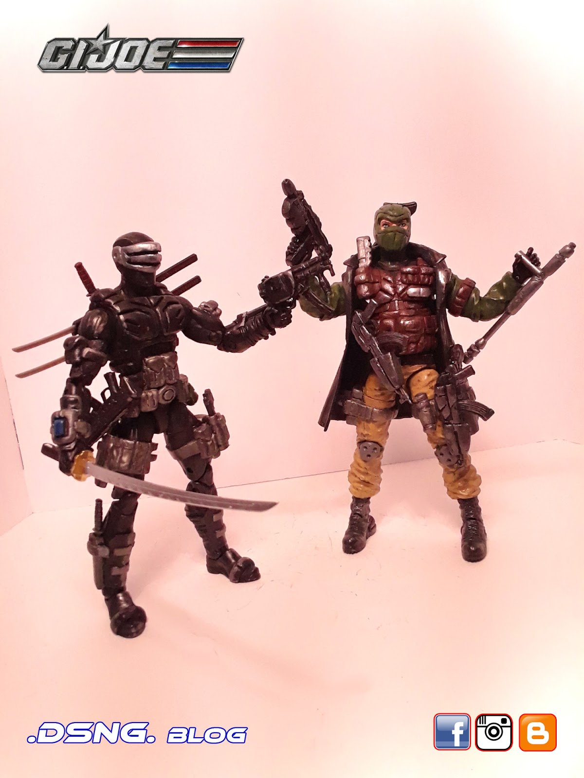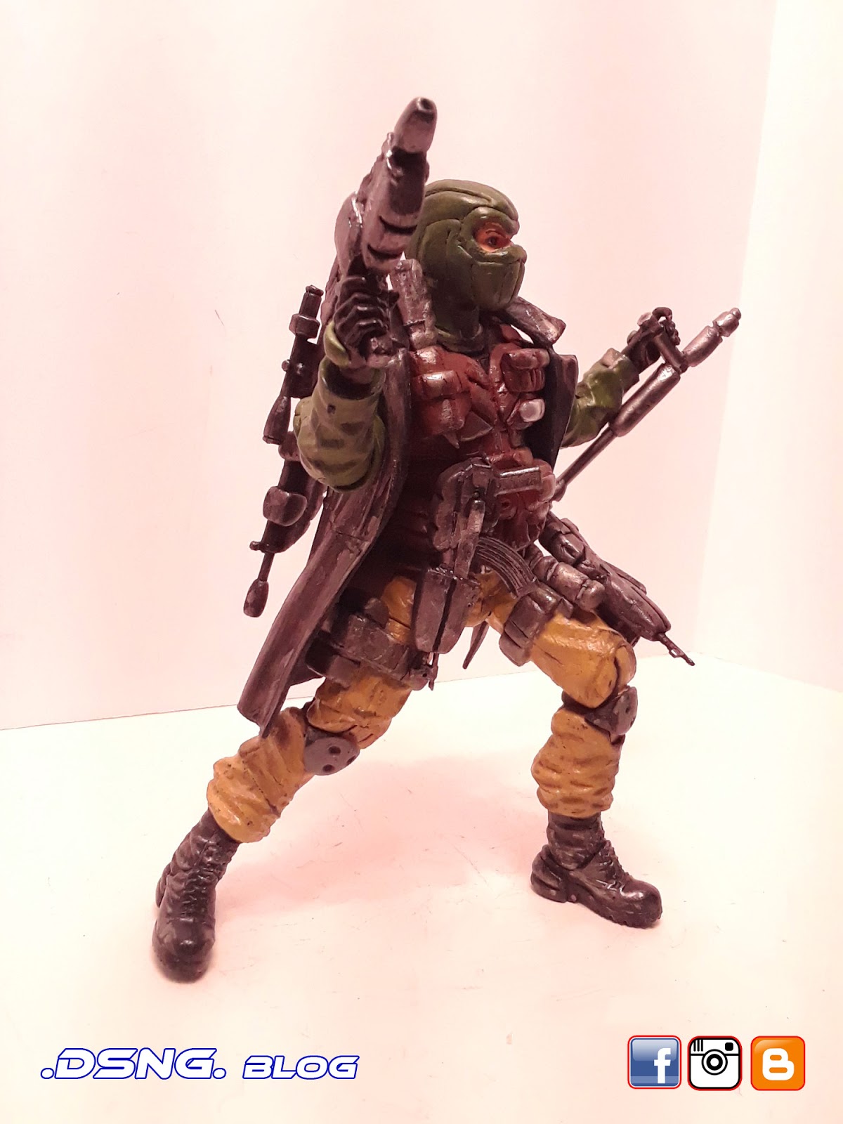 I heavily modified his guns, after buying them on ebay. And the jacket came from Punisher. And some of his guns have magnets that keep them in position. I did sculpt the rear pouches on his back [take a look at the putty / sculpting pics below]. Yet I decided to add the jacket, since it seemed to work with the character... it just gave him more swag LOL. Tamiya paints were used, and he was hand painted. My custom Snake Eyes was added to the mix, and his former gallery is over