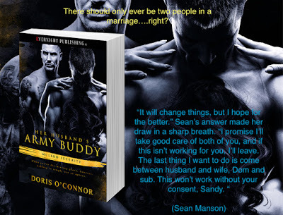 Thanks so much for hosting my new release today. Her Husband’s Army Buddy is out now, and the first in a new series called McLeod Security. Like so many of my stories, this one started as a flash on my blog. Little did I know then, that it would evolve into a series. When I expanded the flash, it was to be a short story in honor of one of my reader’s birthdays. The Sandy in the story J As I wrote it took on a life of its own, side characters popped up demanding their story to be told, and hey presto a new series was born. Book two is already completed and the next two are in the planning stages, so watch this space as they.I should add that all stories will be Standalones, loosely connected through McLeod Security, some darker than others, with different pairings and D/s dynamics, and familiar characters will pop up throughout.