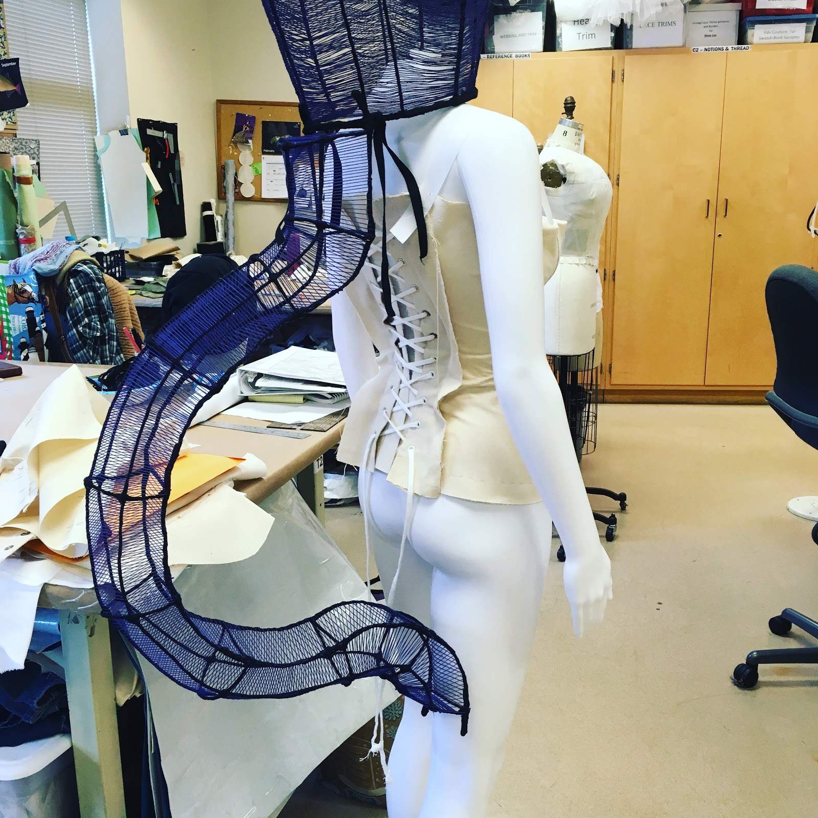 Wire-frame headdress with hinged "tail" element inspired by an art photo, by first-year grad Cami Huebert(The scale of this was too big to fit well in my phone's square photography format!)