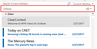 The “All” Menu is Gone in recent Windows Outlook 2016 Inbox Update