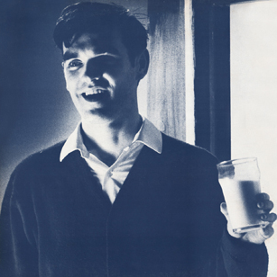 With this simplicity of character in mind, Morrissey designed the Smiths' album and single covers with Jo Slee of Rough Trade, utilizing a simple aesthetic: a duotone photo of a vintage pop star, cult hero or actor, tinted with a contrasting color for text in a sans-serif laden font. (Belle and Sebastien followed suit more recently with a similar format.) The band themselves did not appear on the outer cover of their UK releases. However, Morrissey appeared on the alternative cover shown for "What Difference Does It Make?," mimicking the pose of the original subject, actor Terence Stamp, holding a chloroform pad from the 1965 film The Collector, after the actor objected to the use of his image. Morrissey instead holds a glass of milk.