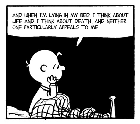 Still hanging philosophical, here's more proof The Smiths were genius. The following Charles Schultz Peanuts comics were reinvented by Loren LoPrete for her Tumblr, This Charming Charlie, incorporating Charlie Brown and The Smiths. I do not have any rights to these panels, but hopefully, AM can bring a little extra light to their poignancy.