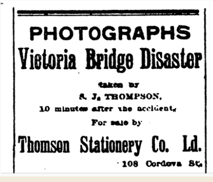 New Westminster photographer Stephen Joseph Thompson, just happened to be in Victoria that day and he had his camera with him. He snapped a photo and quickly realized that he had a business opportunity and ran an ad in the Vancouver News-Advertiser the next day.