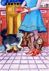 Synopsis: Cheets is looking for an adventure! The elf had heard about ‘town’. Emma and her mother went all the time but no one from the fabled forest had been there. Cheets was certain it was a magical place and he decided that he must head for Troublesville. He stows away in the car one day and finds himself in busy, noisy streets all alone. He begins his adventure by befriending two cats who live in a house with two humans. Then because of his obsession with carrots, he is captured in a trap and that’s when his adventure no longer is any fun. 6f. 15m. (many roles non-gender)