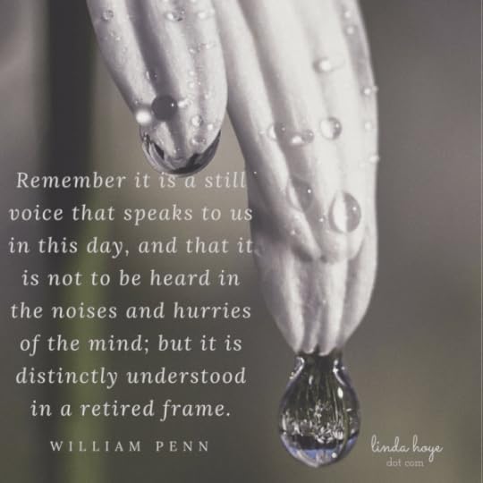 Remember it is a still voice that speaks to us in this day, and that it is not to be heard in the noises and hurries of the mind; but it is distinctly understood in a retired frame. William Penn