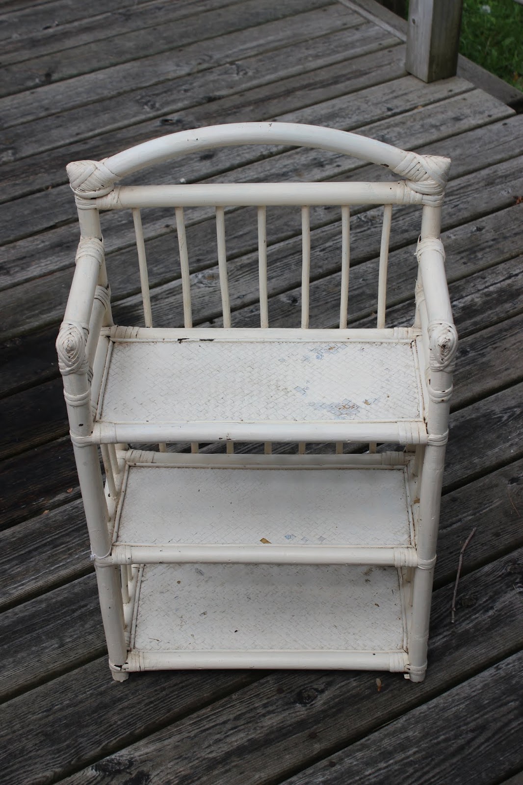 Last weekend I bought a little shelf. It was in pretty rough shape, but I scrubbed it clean, bought a can of spray paint, and now it's very cute and will house some of my cookbooks.