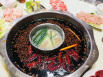 Hotpot was originally eaten by boatmen on the Yangzi River but it quickly spread all over Chongqing and the rest of the Sichuan. Nowadays, you can find Hotpot places all over the world, from China Town of San Francesco to Sauchiehall Street of Glasgow, Scotland. It is hugely addictive because it uses a mixture of spices, notably Sichuan peppers and chillies to create a super hot, heavy flavoured thick soup, which is kept on the boil at your table. You dip in the food of your choice, then pop into your mouth. As a help-yourself-treat, friends and family usually gather together at one table. Traditional hotpot offers customers cattle guts, cattle bellies, different meats, beancurd and a section of seasonal vegetables. Nowadays you can almost order anything you wish, and you can choose how hot/spicy you want it to be.