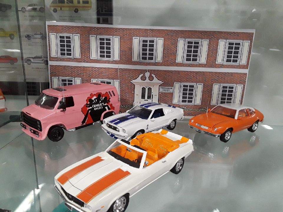 It's a trip to Townsend Agency, where the vehicles of Jill, Sabrina and Kelly are parked outside as the girls listen to their next assignment. There's an extra non-screen vehicle thrown, but it's one we just know "Charlie's Angels" would have loved to drive!