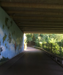 Bearing in mind its location, you may think north Cardiff was not the best possible place for a park. No sooner have you entered the gate and ambled up the lane than you’re strolling beneath the M4 (motorway/freeway/autobahn). Memorable if nothing else for its neat mural and though hardly serene, somehow it all works as the noise and frantic motion of vehicle rush soon evaporates.