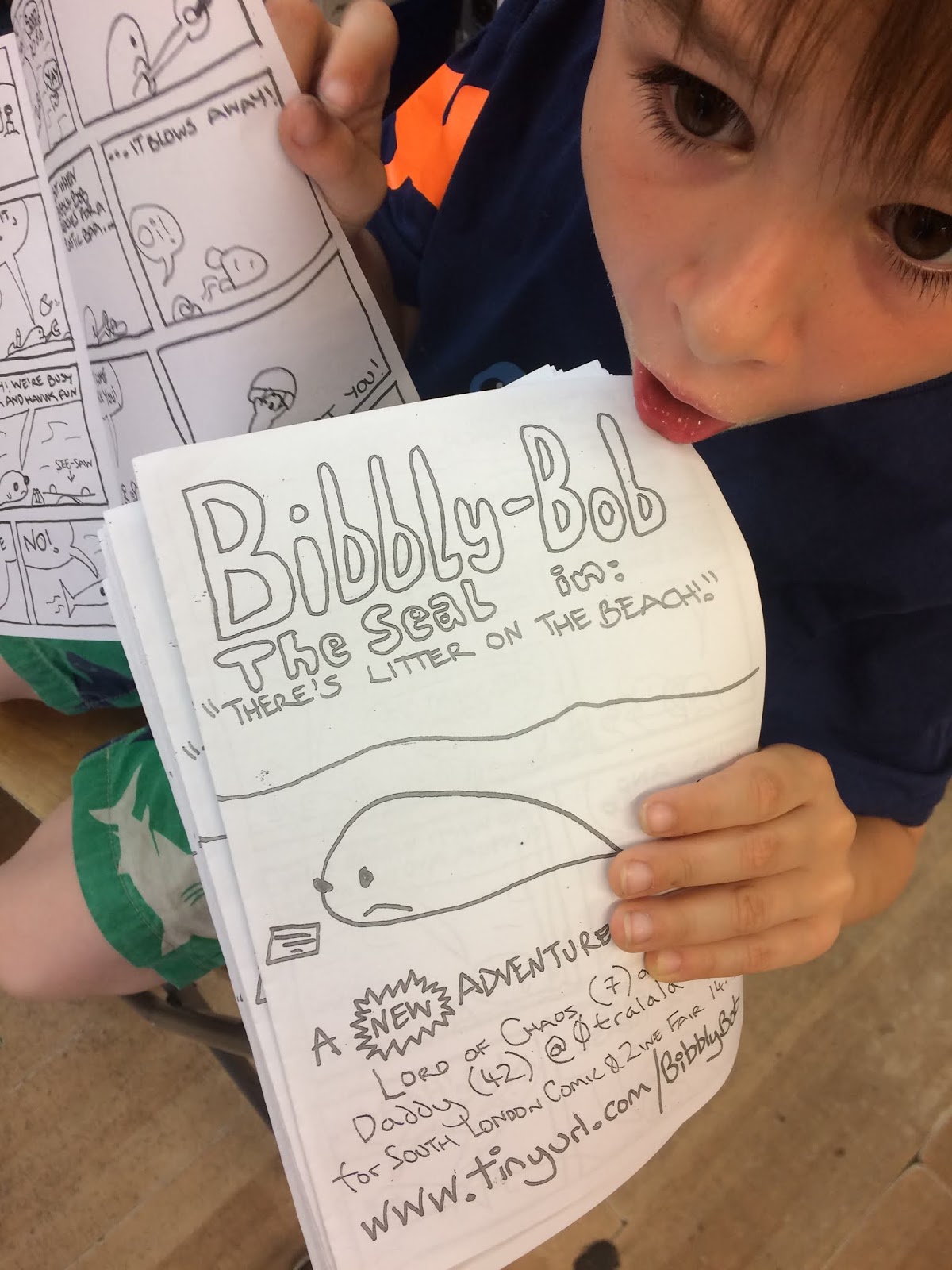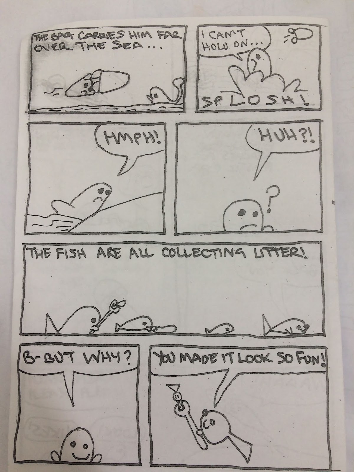 Bibbly-Bob the Seal comic - in which (oh no!) there is litter on the beach. Story and art by Lord of Chaos, with inking and lettering by his humble servant.