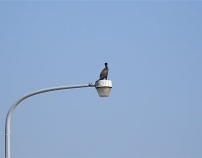 The cormorant is looking away, so its yellow/orange beak is not visible.