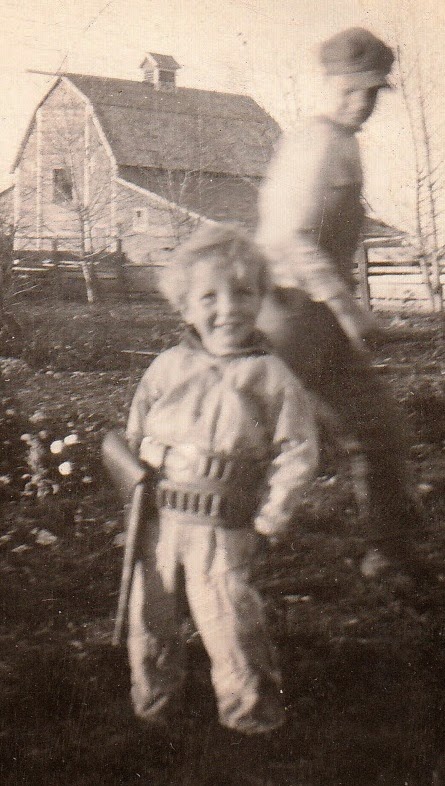 And yes, that is a gun. Don't ask.Okay, I admit it, I have had a few . . . misunderstandings . . . with the family car.One where I hit the ditch. (Only my pride and my Dad’s $400.00 deductible suffered.)One where I backed into the tractor. (Who needs a fender?)Another when I filled the gas engine with diesel. (Oops.)And one where I ran into the carport. (Repeatedly.)The hardest thing about each of these was the actual ‘Telling-of-The-Dad’.Actually, with that last one, I didn’t have to tell him because he appeared. In his jammies.Now that’s a sight I’ll never forget.Ever.Moving on . . .2014. I was visiting with my Dad.And discovered, to my everlasting joy, that he had also had his share of automobile . . . mishaps.The first when he was just a little gaffer (his words).Gleefully, I tell you about it . . .He and his mother were on their way to Cardston.A town approximately 34 km (21 miles) from their home in Glenwood.His mother drove.Little Mark divided his time between playing about on the floor and looking out of the window.It was 1928. Seatbelts hadn’t been invented yet.They crossed the river and little Mark was interested to see a couple of young men sharing a picnic lunch beside the gently-flowing water near the road.Their car passed the young men and started to climb the hill.And that’s where it stopped.The car, I mean.Dead.His mother slammed on the brakes to keep the vehicle from rolling backwards and sent her young son back to the two young men to elicit aid.Putting his own spin on things, little Mark, sure that his mother was in dire circumstance and picturing all sorts of disasters if the car rolled backward on the road, fairly flew to get help.Almost incoherent in his appeal, he finally managed to convey the gravity of the situation and said aid was immediately procured. (Ooh! What big words I’m using today!)The young men hurried to the rescue.Within seconds of their arrival, they ascertained that the engine was being starved of fuel.Now, a little background. The elderly car which little Mark and his mother were driving had its gas tank up front, under the windshield. Perfectly situated to gravity feed fuel to the engine, but not really the best position for safety.Or, as it turns out, for a little boy’s inquisitive fingers.The gas line snaked down to the floor and from there to the engine. And, somewhere on that line, was a little pet valve.That turned easily.Back to my story . . .One of the young men followed the line with his eyes. “Hey! The valve’s been shut off!” He immediately effected ‘repairs’. “I wonder how that could have happened?”Mark's mother’s eyes went to her small son, who had suddenly become very, very quiet.The young men started the car and the trips to and from were accomplished without further incident.My point is this: All right, nothing was actually ‘damaged’ in this story. And repairs were minimal and complete. But you have to admit it’s proof that my dad and cars have a history. And that he has done things that caused some automobile – and driver – grief.It’s a leap, but it’s all I have.I’m taking it.