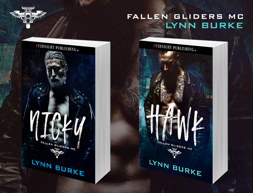 As a member of the Fallen Gliders, bad boy biker Hawk Richards tends to use his fists first and has fucked his way through the club whores. Life has been a never ending supply of bikes, women, and beer. When his brother hands in his colors, Hawk is sworn in as the new Sergeant at Arms and struggles to find meaning in the club and his existence. Until her. Janie is curvy as fuck and the sweetest thing Hawk has ever seen. The young woman with the joy of life in her eyes is everything he’s been missing, everything he's ever wanted. When the little butterfly falls into his arms, he wonders if someone might finally look beyond his ink and reputation to see the man hiding underneath. Janie’s life has always been a roller coaster, and even though she’s flying high with Hawk, she knows a crash is inevitable. The last thing she wants is for him to be burdened with picking up the pieces. But how can she resist him? His touch makes her burn, and every minute in his bed intensifies her craving for more. Can Hawk convince Janie he wants her for the long haul, or will the secret she keeps tear him from her side forever? BUY IT ON SALE NOW FOR ONLY $2.99 AT EVERNIGHT PUBLISHING! Evernight Publishing: https://www.evernightpublishing.com/hawk-by-lynn-burke/ OTHER RETAILERS: Amazon: https://www.amazon.com/dp/B07FW6FVYQAmazon UK: https://www.amazon.co.uk/dp/B07FW6FVYQSmashwords: https://www.smashwords.com/books/view/882484Kobo: https://www.kobo.com/us/en/ebook/hawk-24B&N: https://www.barnesandnoble.com/w/books/1129166052 EXCERPT: We’d been in Sturgis for almost a week, and I hadn’t fucked a single woman. My outlook on life sucked the previous couple of months, to the point the thought of having my cock shoved down a willing throat or burying myself balls-deep in some random cunt didn’t even twitch my dick. I felt like a wind-blown leaf with no sense of purpose, no desire for sex or companionship. I’d taken to drinking harder stuff than my usual beer but knew the slump I floundered in wouldn’t end well unless I decided to pick my ass up and figure out my life.Perhaps today’s the day, I told myself, picking up the shot of whiskey our waitress sat in front of me. A flash of red-brown hair drew my gaze to the far left before I could pop out the toothpick and down my drink. A little butterfly with gray-green eyes flashing along with her wide smile. Dimple, full lips, high cheekbones—a fucking model in a tight tank and Daisy Dukes.My cock thickened inside my leather pants, and my head turned as she slowly passed by the picture window, her face animated and lips moving as she chatted with her friends, the joyful gleam in her eyes snaring me tight. She radiated life, an exuberant, light step while I wallowed in my shit life. Jealousy and yearning for what she experienced clenched my chest, and I found myself rubbing a hand over tattooed pecs I spent hours sculpting on a daily basis.The little butterfly passed beyond the window, and I sat back, not realizing I’d leaned forward to keep her in sight.“Finally see something worth fucking?” Jonny asked with an elbow to my ribs.“Fuck, yeah. Reddish hair—not the dyed kind—and tits out to here,” I said around my toothpick, holding my hand out a few inches away from my chest. “Young and full of life.”One of Jonny’s eyebrows rose. “What the fuck you sitting here for?”I hesitated to glance around the group of men—fellow Fallen Gliders from across the States, discussing the lighter aspect of business. A large meeting had taken place the night before, the heads of the chapters sitting down to discuss the future of our club. Just more depressing shit to pile on life.“Go on,” Jonny encouraged, elbowing me again. I hopped off my stool and pushed my way through the crowd for the front door. At six-foot-five, I had no trouble seeing over most of the heads bobbing to my right as I stepped out onto the sidewalk. The roar of mufflers and cranking music from Christ knew where filled my ears as I breathed in the scents of exhaust, sweat, and cheap perfume in the night air. I took a half-dozen steps to the right, scanning the crowd of people on the sidewalk in front of me before pulling up short. No fucking way I was going to find her unless I acted like an asshole and shoved people out of my way while hurrying the way she’d gone. Curses flew from my lips while I turned back toward the bar. A voice in my head sang a country hit, reminding me that if we were meant to be, it’d be. “No fucking luck?” Jonny asked as I slumped back onto the stool.My scowl sufficed for an answer.Tipping back my head for the whiskey burn didn’t help my shit mood. Neither did the bloody burger and pile of fries fifteen minutes later. Thoughts of the little butterfly warred with depression in my mind, and I called it an early night, leaving my brothers behind. The quietness of the hotel didn’t offer anything but a hot shower where I could blow the load that had been building in my balls for weeks. At least I had a semi-purpose … find the vivacious little butterfly and steal some of her joy in life for myself.© Lynn Burke 2018Sign up for Lynn's Newsletter, and read the ENTIRE first chapter of Hawk AND enter to win an ecopy of Nicky, FG #1!