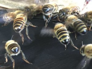 A few days passed until I visited them again. I was pleased to see maiden bees standing around the doorway scenting their sweet-smelling Nasanov perfume that helps guide the foragers home. They retract the last section on their hind end and mist the area with what to me smells like peanut-butter-honey.