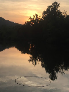 The first night I arrived (9 PM, after stopping off for dinner in Charlottesville), everything was absolutely dead quiet. I worried I'd be the only night-owl. Turned out everyone was just over at the Amherst County Fair, the first time they've had one here in over forty years. The next night, we adventured to the lake on Sweet Briar's campus to see a fellow's installation art (a prototype); another fellow read a story he'd written while here, and a third opened up her studio for an impromptu look at her paintings.