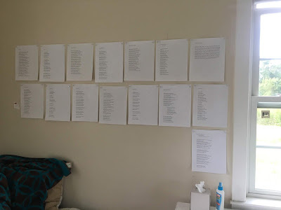 I wish I could say this time is all about recharging creative energy. I have over 1,500 pages to evaluate (literally) of work not mine, some of which requires line edits. Yet this is also my chance to push-pin the pages of the fourth collection to the walls, and live amongst them. There's a distinct type of edit that gets done when I look at pages casually, skipping around, and compare adjacent shapes of poems. I catch redundancies of phrase I did not see before.