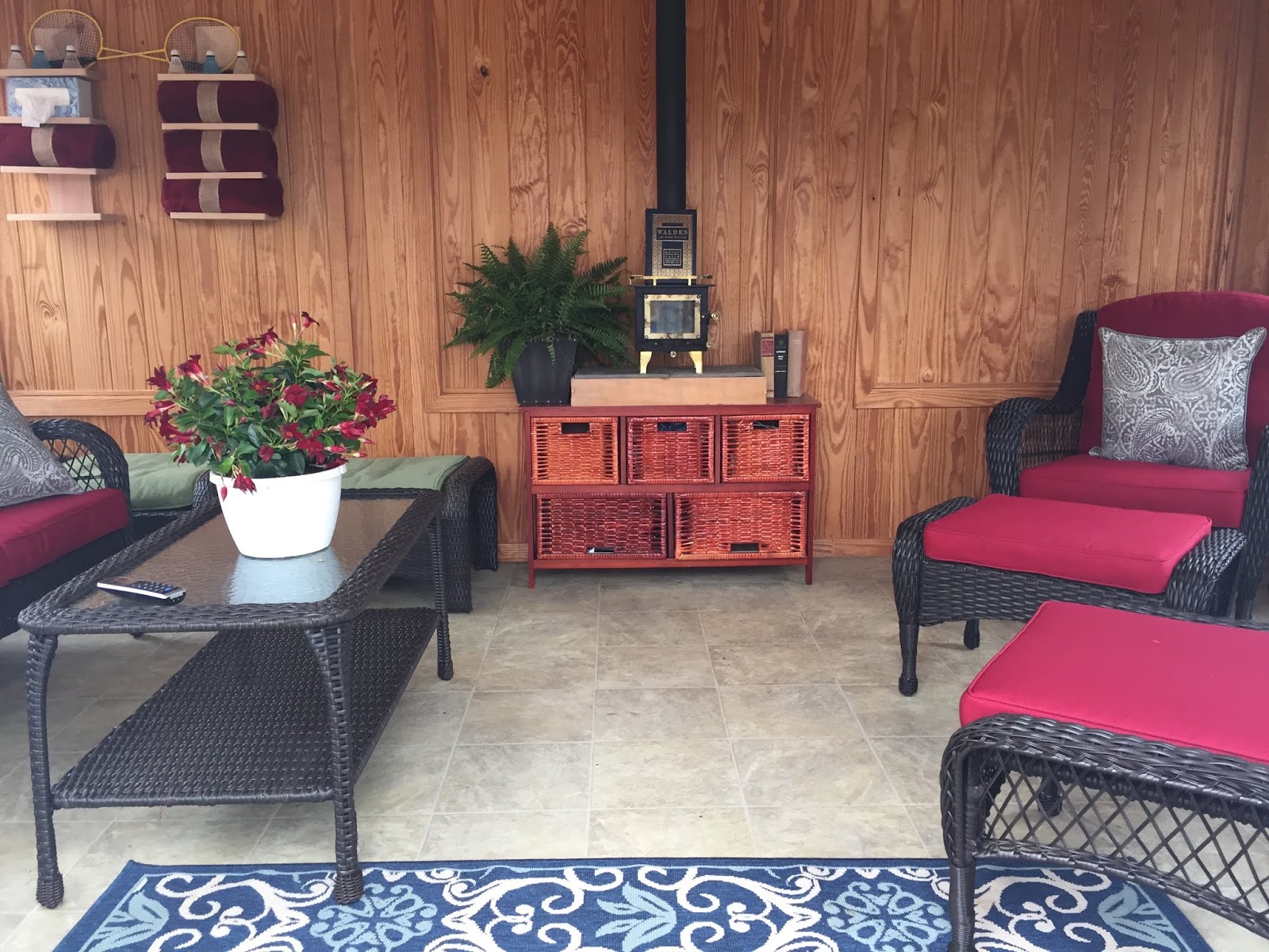 The covered side porch sitting area is great for mornings and gets a fabulous view of the sunrise.