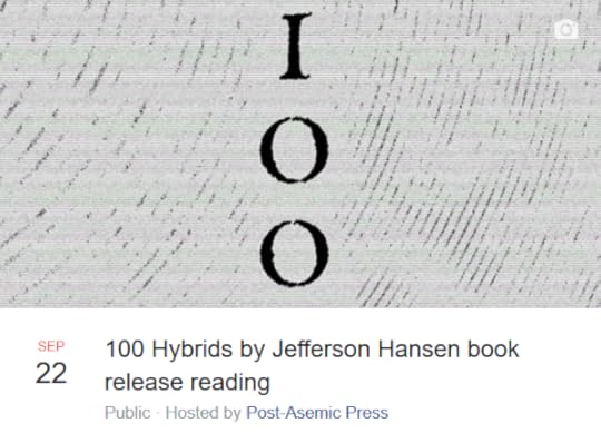 100 Hybrids by Jefferson Hansen Book Release Reading, at Boneshaker Books in Minneapolis, on September 22nd from 6pm - 7pm
