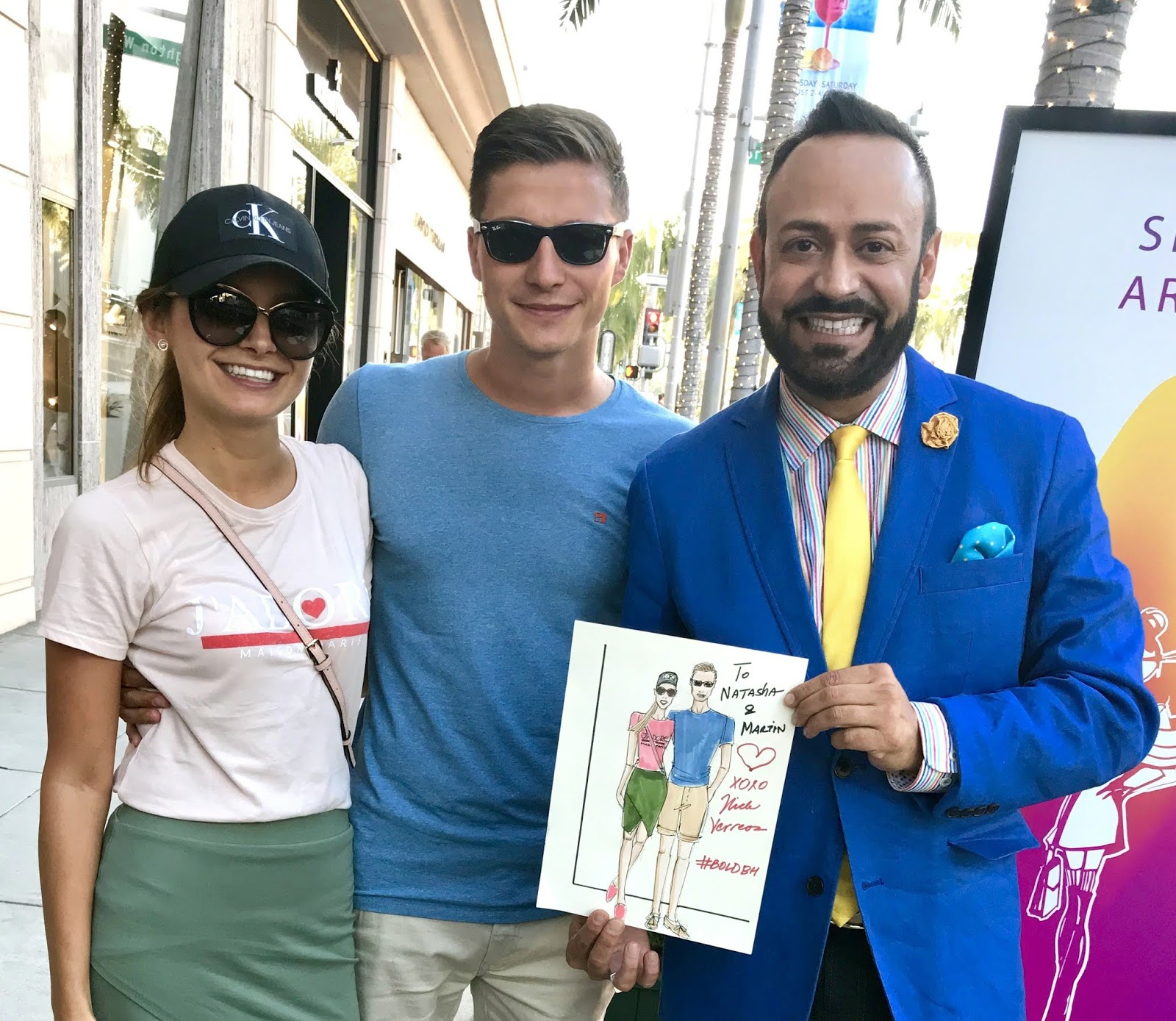 Nick Verreos and Rodeo Drive shoppers Natasha and Matrtin--and their "Nick Verreos Custom Sketch"--Rodeo Drive "BOLD Beverly Hills" FIDM Sketch Artists Event, Rodeo Drive Beverly Hills
