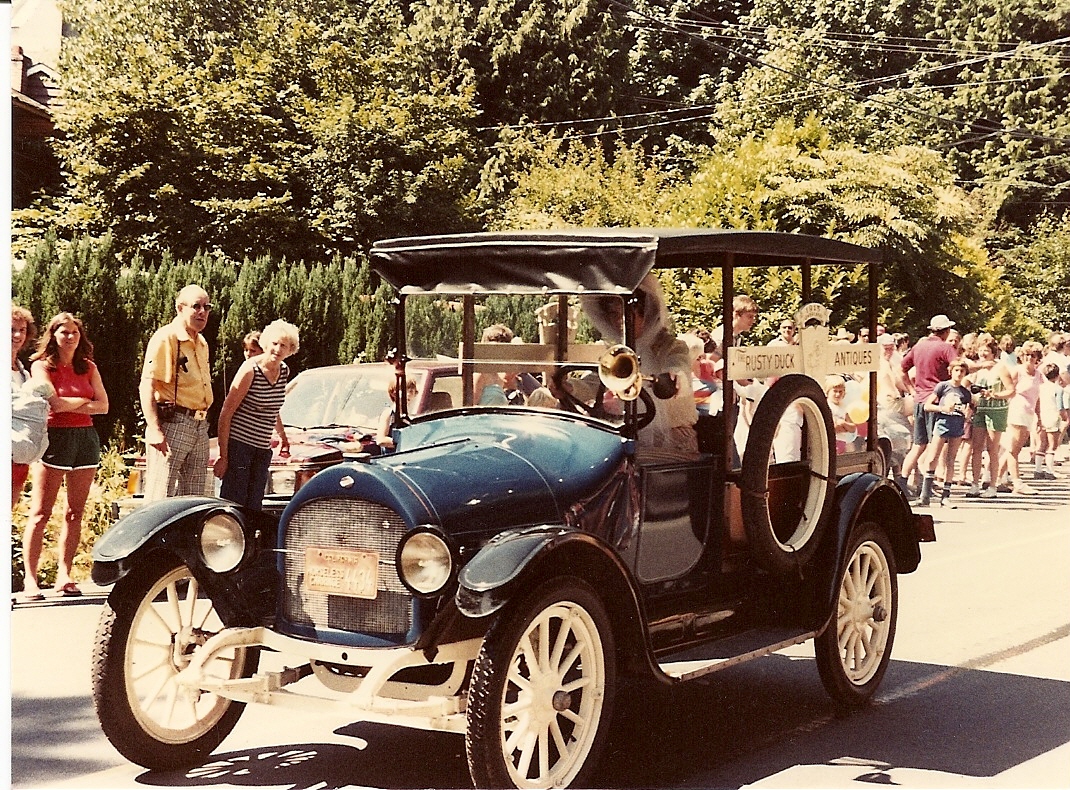 Lynda manejando el camión de Rusty Duck AntiquesMe junté con el departamento de bomberos de Bowen Island en 1980 como la primera, y la única bombera  hasta ahora.  ¡Nadie iba a pelear con Lawrie sobre mi participación al departamento porque el era un trabajador por mucho tiempo del departamento!