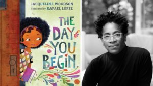 First, I wish every classroom would begin the year reading Woodson’s new picture book The Day You Begin together. Especially for those children who are new, or feel different, or worry that they don’t fit, this book extends a welcoming hand and reiterates that everyone has a story to share. I’m sending a signed copy of this book to Holabird Academy, the school that I am working with this year through #KidsNeedMentors.