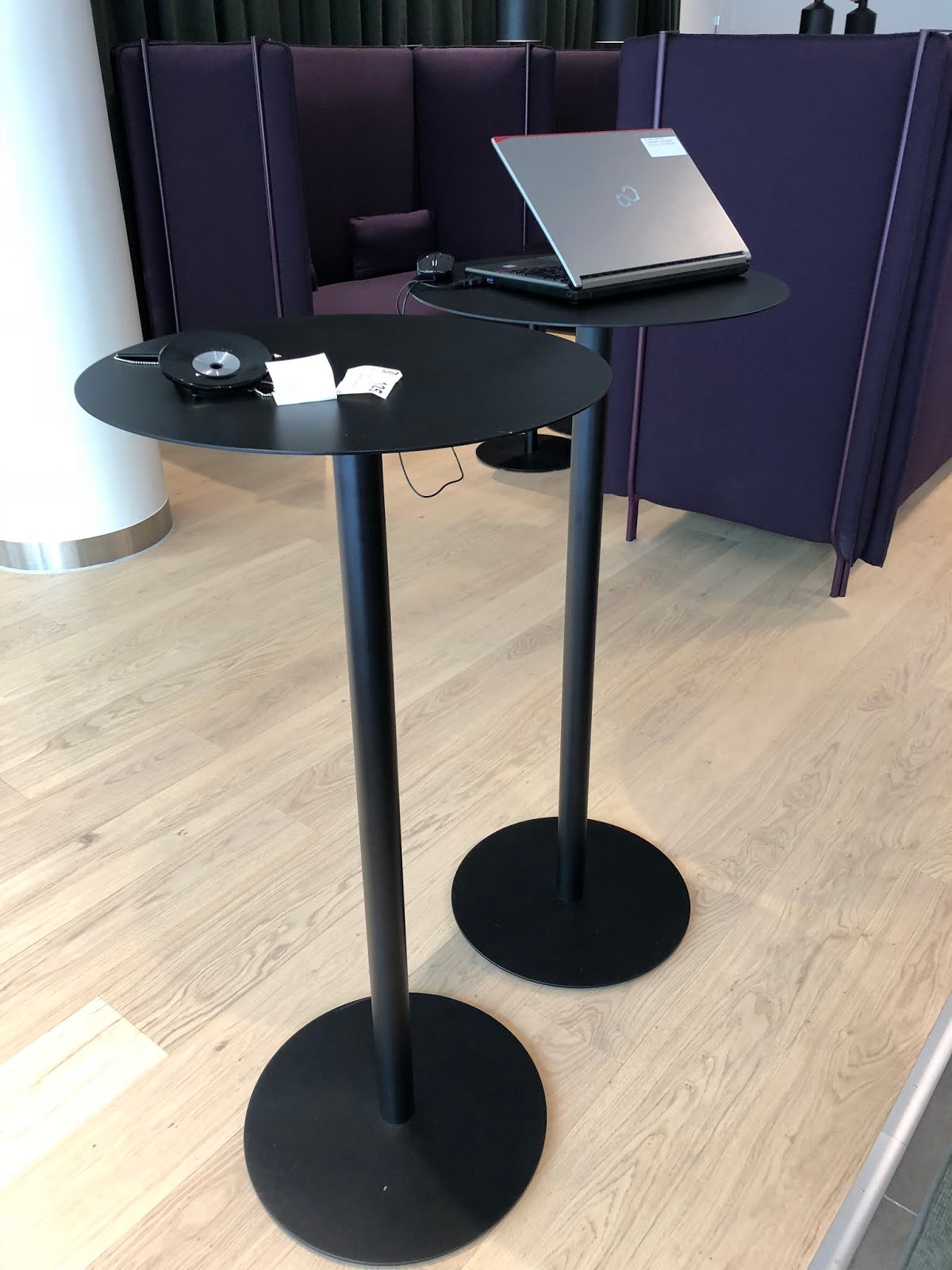Kaféstämning råderMitt eget ärende löstes (nåja) vid de slanka ståborden ovan. Tjejen som hjälpte till tog helt sonika sin laptop och så ställde vi oss där. Det kändes väldigt oseriöst för någon som var med på den gamla goda tiden, när det var en tydlig uppdelning mellan kunder och personal (det kallades för en "disk").