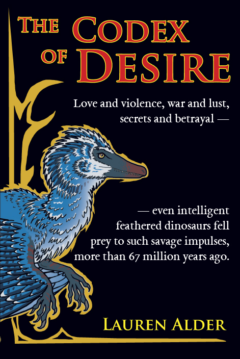 Lauren Alder wrote "The Codex of Desire" because a science fiction time-travel novel about intelligent feathered dinosaurs in tragic love triangles had never been written before — and she knew that she was just the one to accomplish it.