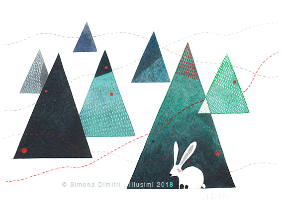 " white bunny & the fir tree ". . . mixed media on cotton paper 20x15 cm / and details19. Schweizer Kunst-Supermarkt, Solothurn